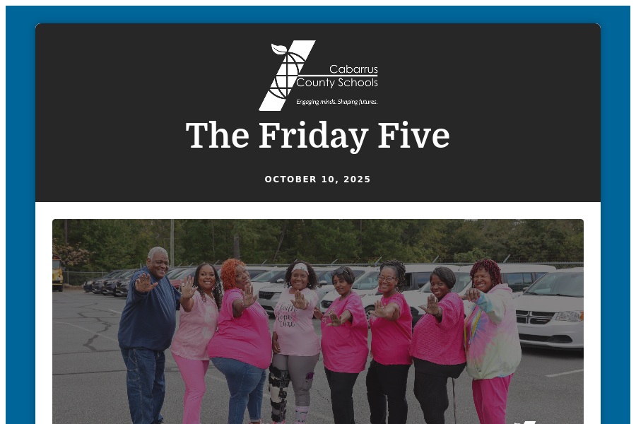 The Friday Five October 10, 2025 Happy Friday, Cabarrus County Schools families! It's been a great week! We hope you enjoy the long weekend, and we look forward . . .